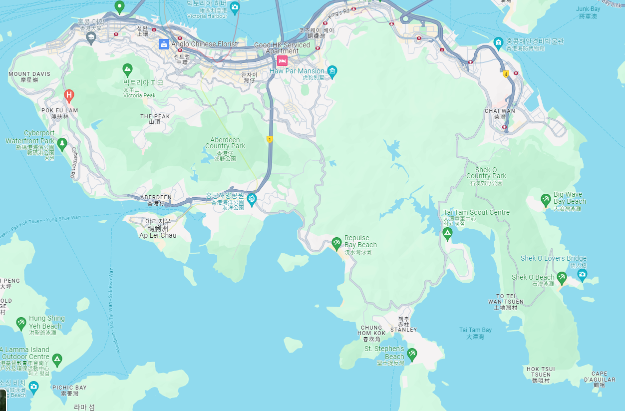 세번째는 구룡반도 아래의 홍콩섬(센트럴, 셩완, 미드레벨에스컬레이터, 소호, , 호라이즌플라자, 오션파크, 리펄스베이, 스탠리)