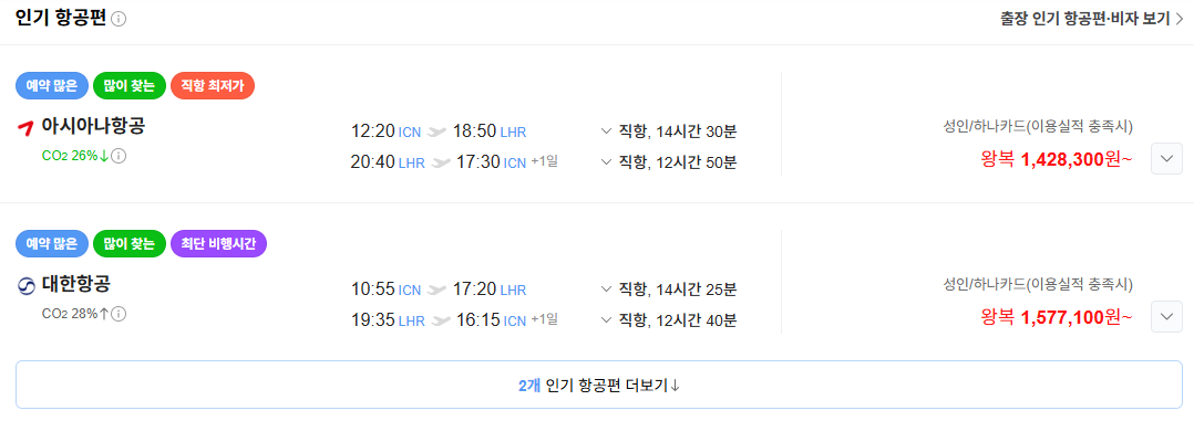 Q: 대한항공 영국 노선 항공권은 언제가 그중에서 저렴한가요?